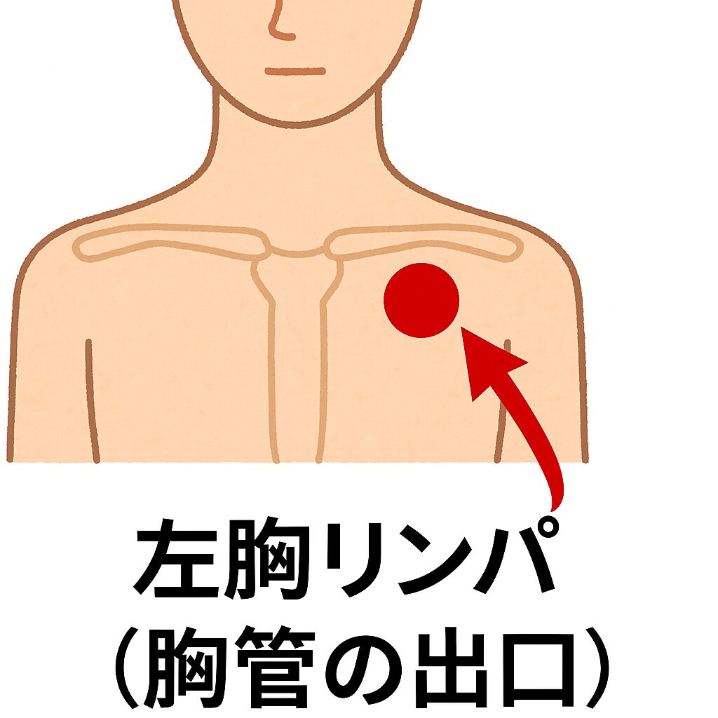 つまり、左鎖骨の下のあたりは、全身のリンパ(老廃物・疲労物質・余分な水分など)が集まる「出口=最終関門」なのです。