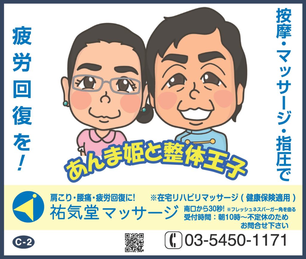 祐気堂マッサージは千歳船橋駅近のあん摩マッサージ指圧整体の治療院です。