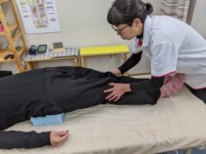 この写真はあん摩マッサージ指圧の手技にてしっかりほぐしてから行います。