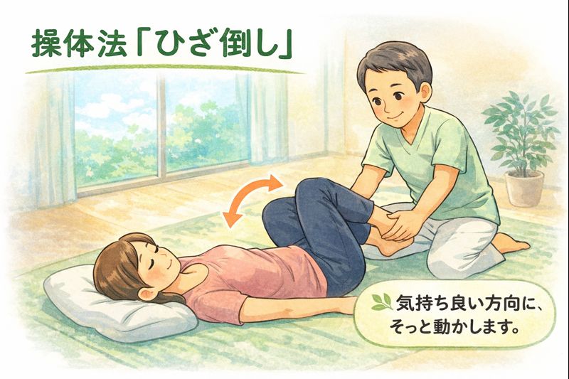 正しい動きを押し付けるのではなく、ご本人が「楽」「気持ちいい」と感じる方向へ、身体をそっと動かしていきます。